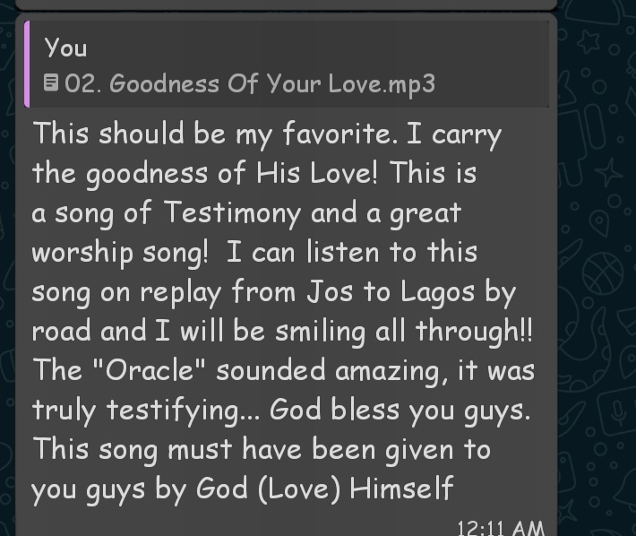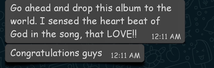Pastor Roy Mathew(The Senior Pastor of House 3:16), listened to the complete project and blessed his boys, with a good review below